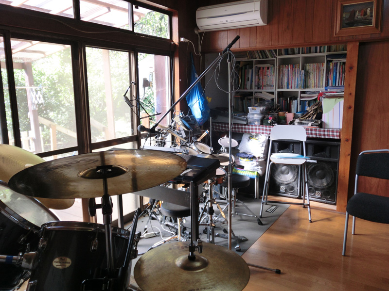 のどかな山の中の古い一軒家、たくさんの楽器が置かれた先生のご自宅にて