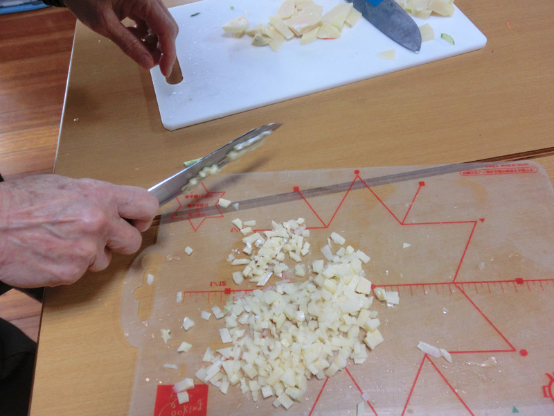 たけのこ、戻した干しシイタケを みじん切りにします。