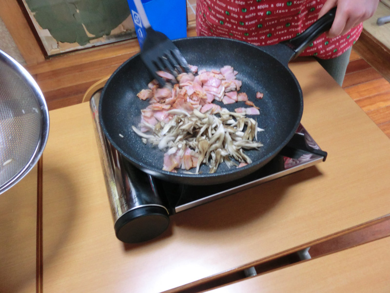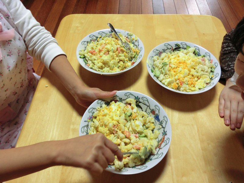 子どもたちを飽きさせないように、段取りよくするために、準備はけっこうちゃんとやりました。粉を分量にわけてビニール袋にいれておくとか、調味料も事前に はかっておくとか。