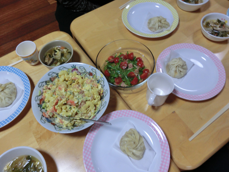 あんまんは、肉まんが嫌いな人がいたら、と思ってあんこを買ってきたのですが、ヘルパーさんたちがうまくアレンジしてくれました。