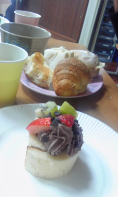 ロールケーキに 自分たちでクリームや