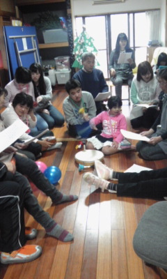 全員でツリーに飾り付けをしたり、歌ったり、