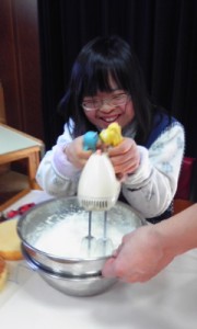 生クリームを泡立てます。
