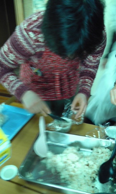 4 ①を冷やし②と合わせ容器に入れ 冷蔵庫で固める。