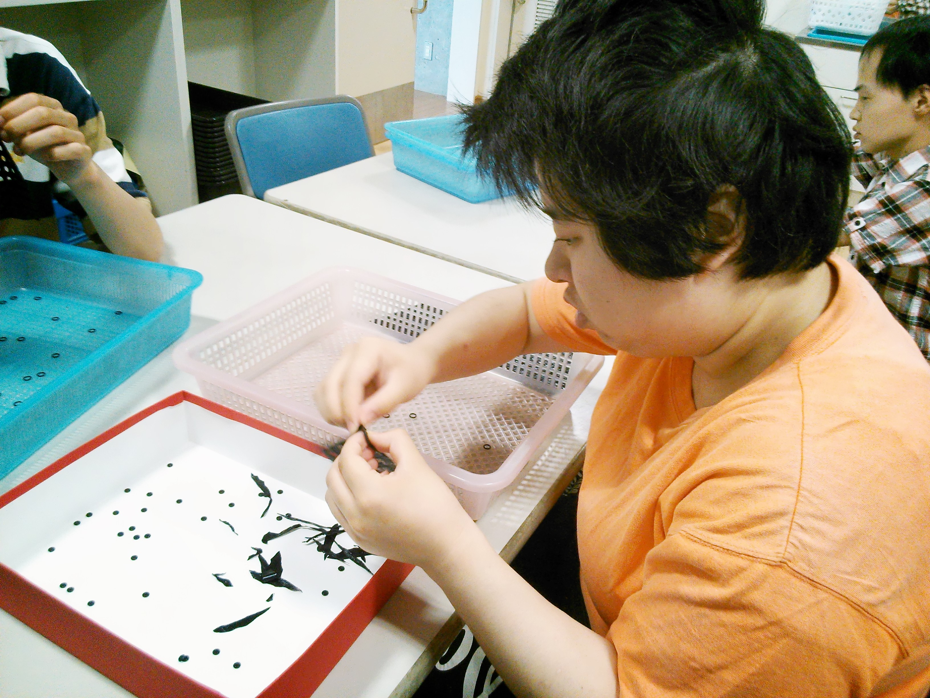 各種下請け作業を 行います。1Fの利用者さんは24名、職員8名。