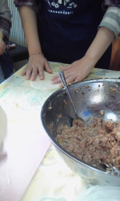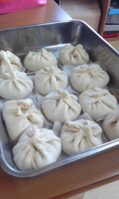 前もっての準備は生地をこねて、発酵させることくらいなのですが、今回は、早めに来てくれた若いヘルパーさんが、力強くこねてくれて、温めた蒸し器で発酵させたので、ばっちりでした。