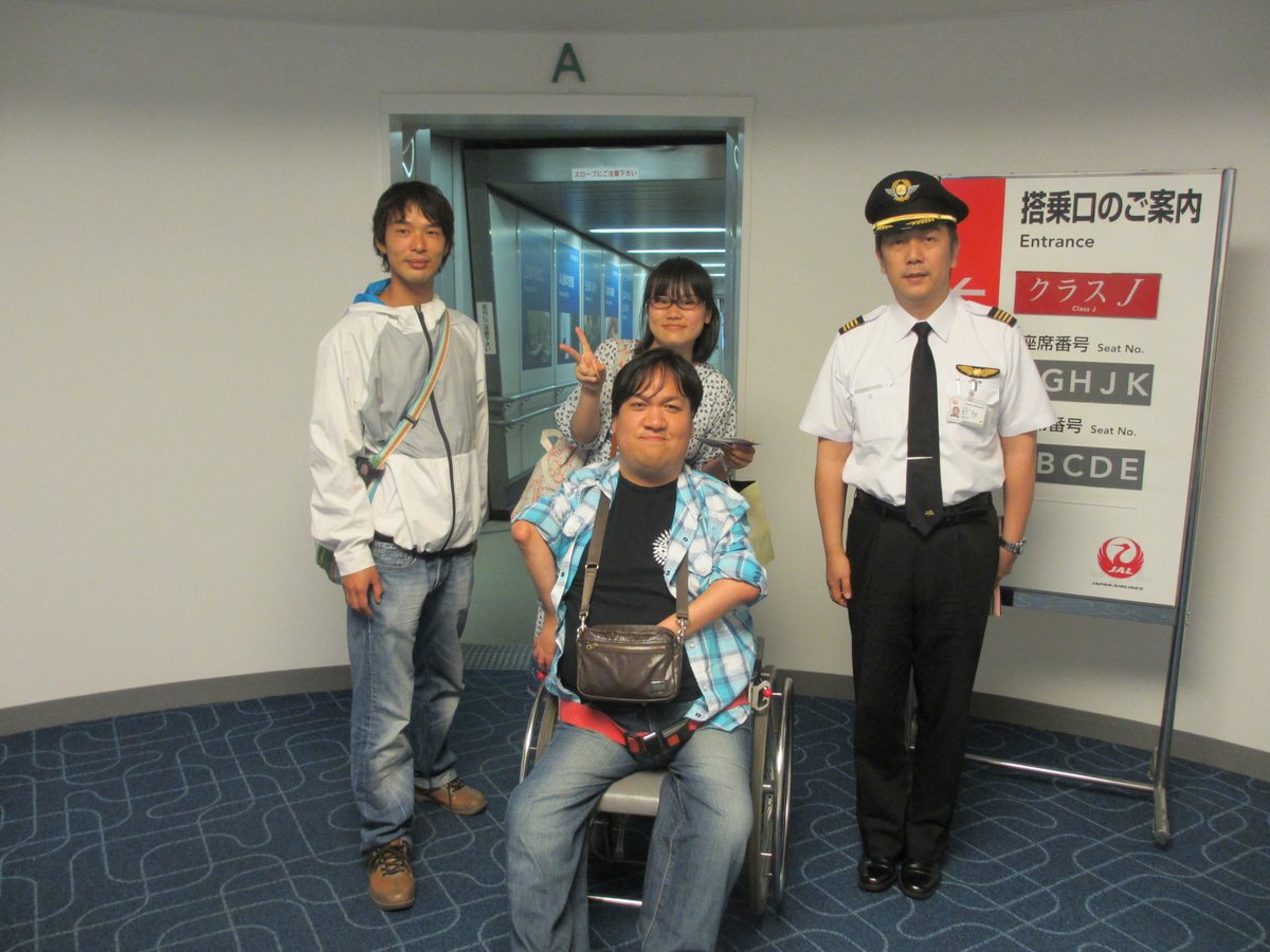 飛行機は車椅子で搭乗口まで行って、
