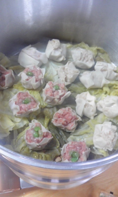 鳥肉のシュウマイ(写真で白く見える方)には
