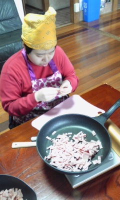 ベーコンを 細かく切ります。