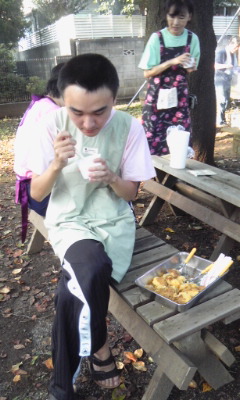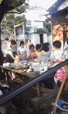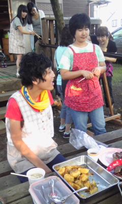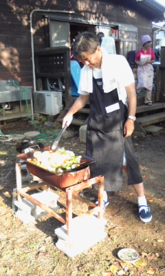 暑い中、大量の やさいや肉を焼く作業は