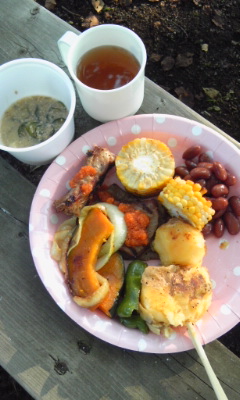 やさいも 庭で焼きます。