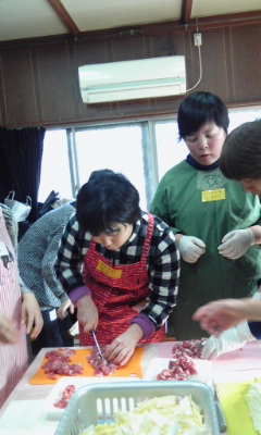 肉や野菜を切ります。