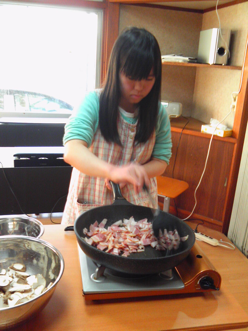 ベーコンを炒めています。
