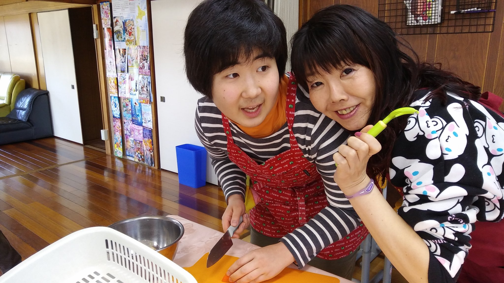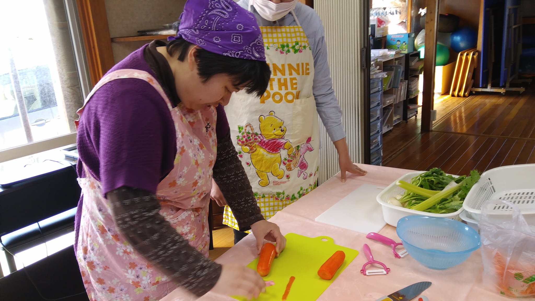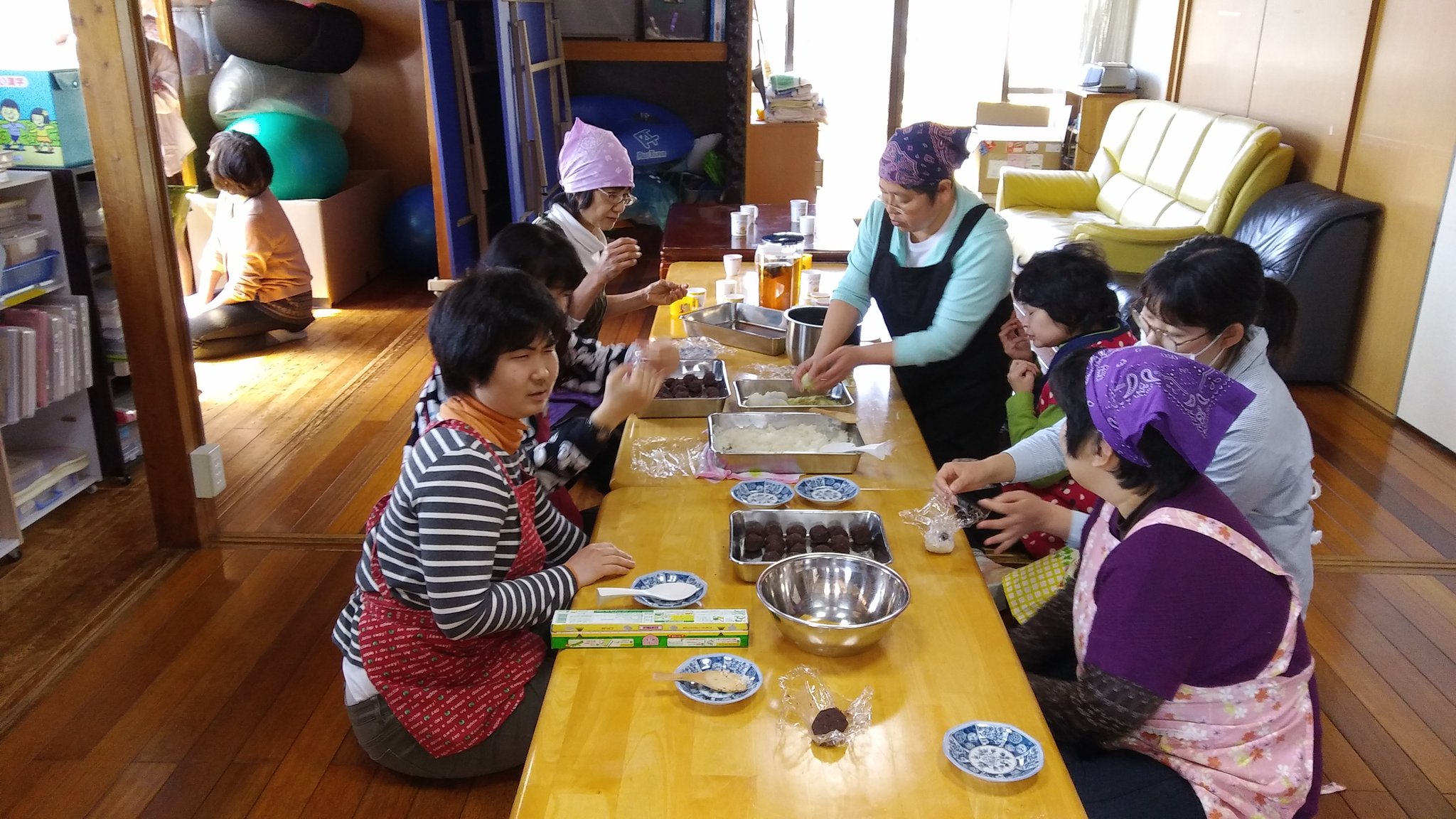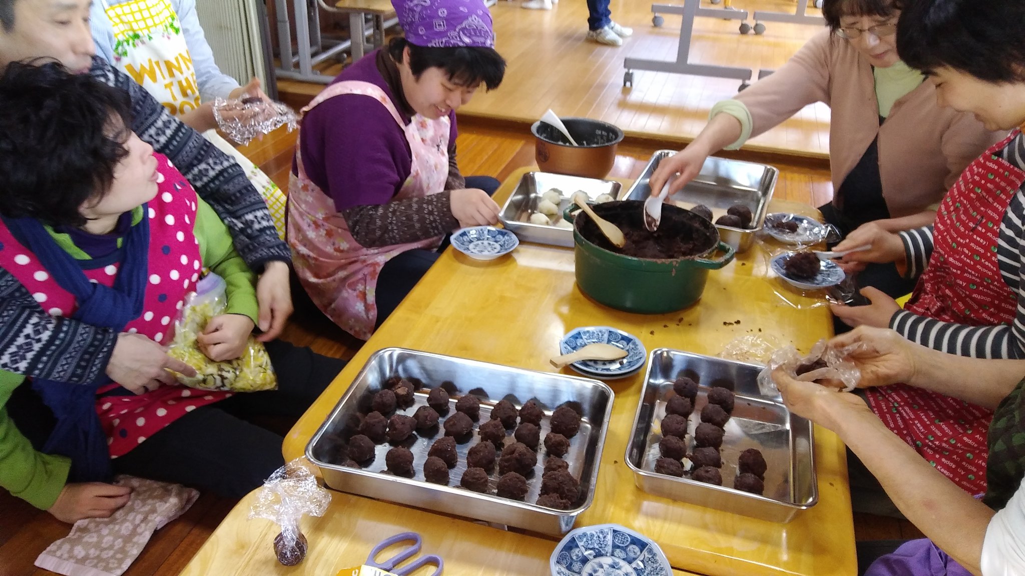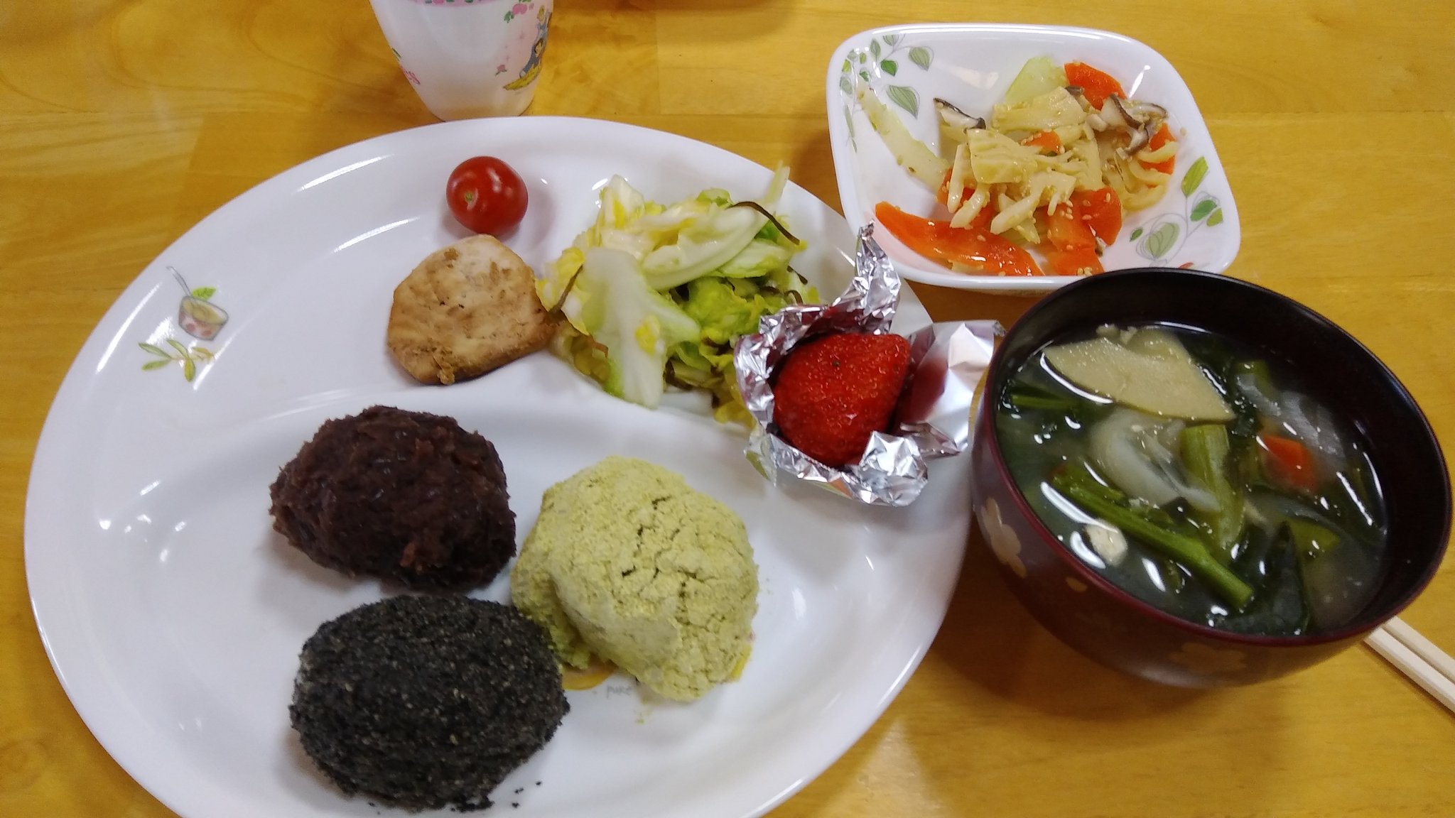 お料理クラブ 2018年3月 お料理クラブ 2018.09.17 みなさん こんにちは。 今回は おはぎを 作ります。 ミニトマトの ヘタを取ったり、 レタスを ちぎったり、 野菜を切ったり、 メンバーみんなで がんばりましょう~。 集中して・・・ こちらは 魚の切り身を 焼きます。 メインの おはぎ作り、 あんこを 丸めて丸めて・・・ みんなで 作業すると 楽しいわね~。 完成しました。 あんこ、ごま、きなこ、 三種。 みんなで いただきま~~す。 みなさん お疲れ様でした。