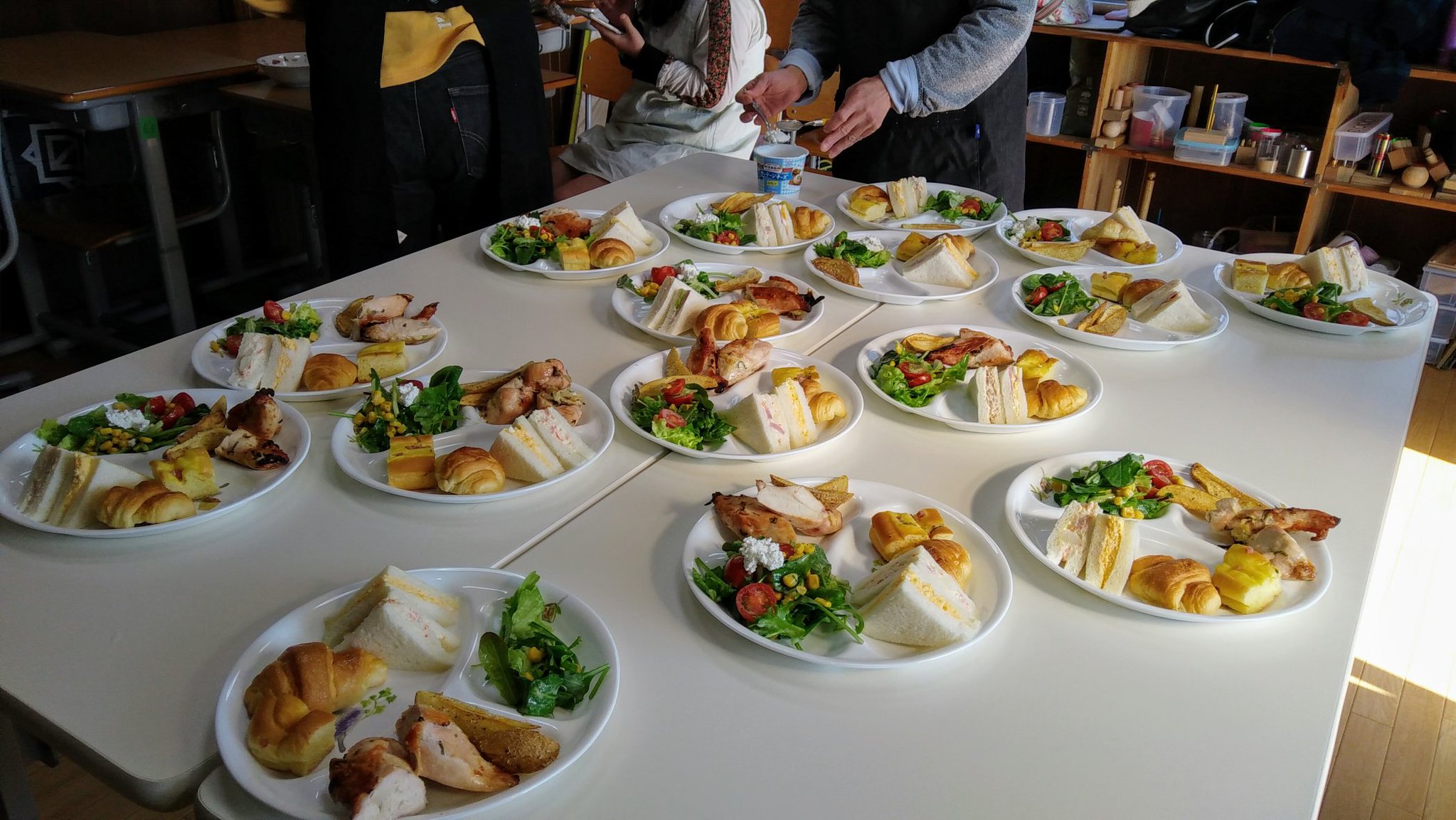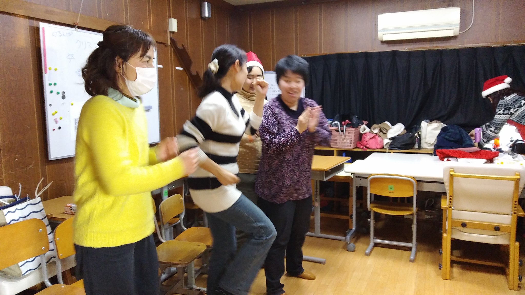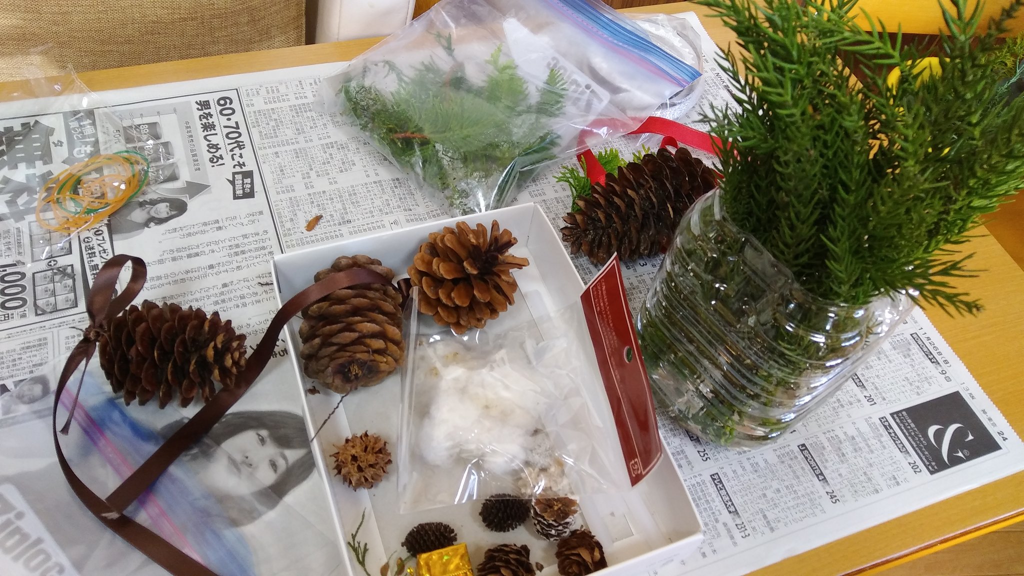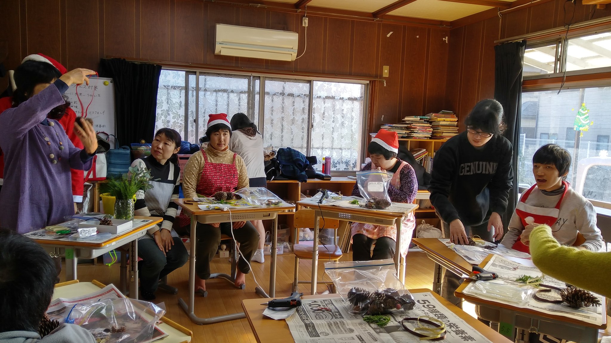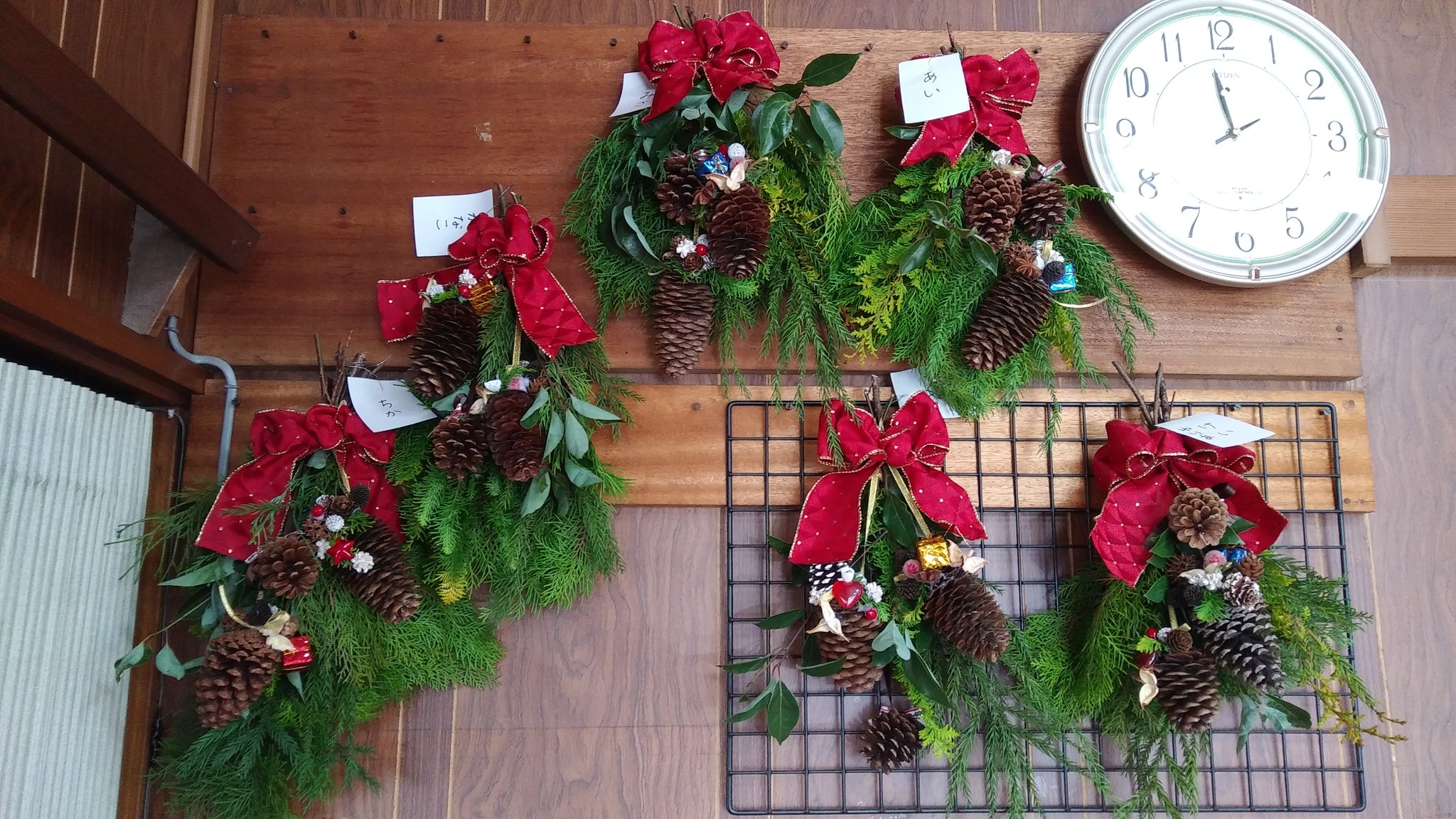 お料理クラブ 2017年12月クリスマス お料理クラブ 2018.09.17 みなさん こんにちは。 今回は クリスマス会です。 最初は のりりんさん講師に ご指導いただき スワッグを作ります。 材料は まつぼっくり、 リボンなど。 見事に 完成しました。 サンドイッチ、 サラダなどを 準備して・・・ ステキなケーキも ありますよ~。 食事の後は クリスマスコンサート。 メンバーによる 演奏です。 客席も 盛り上がります。 ジェスチャーゲームも 楽しいね! また 来年のクリスマスも お楽しみに~~。
