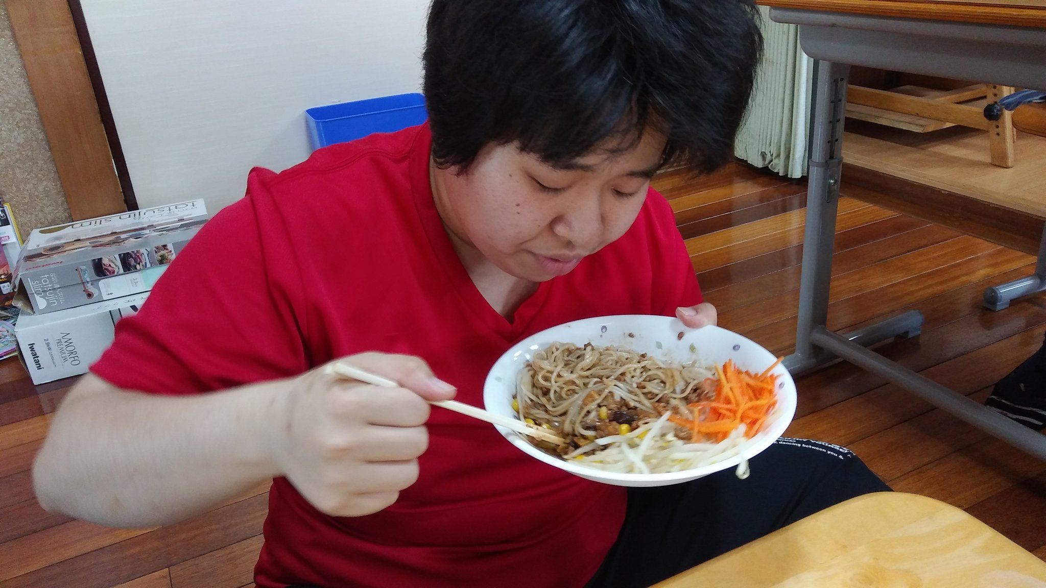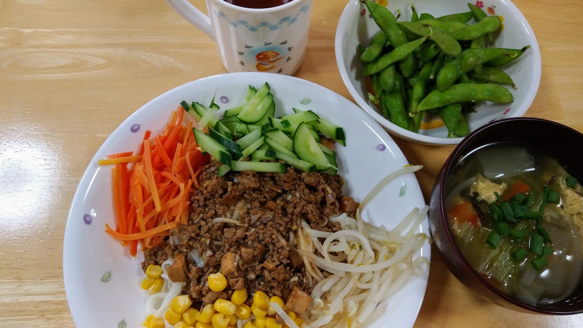 今回は ジャージャー麺を 作ります。当番は み~ぴょんさん、