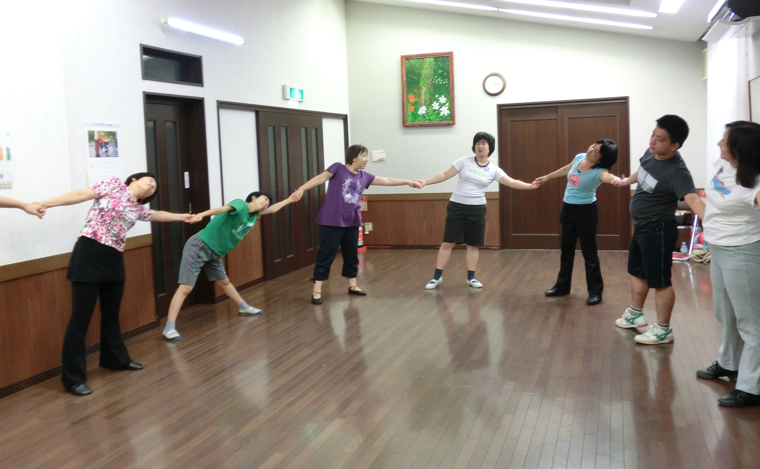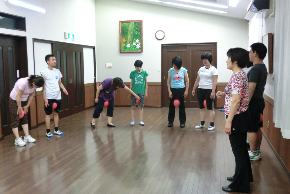 小松先生の 元気な掛け声に合わせて動き始めると、どんどん楽しくなります。