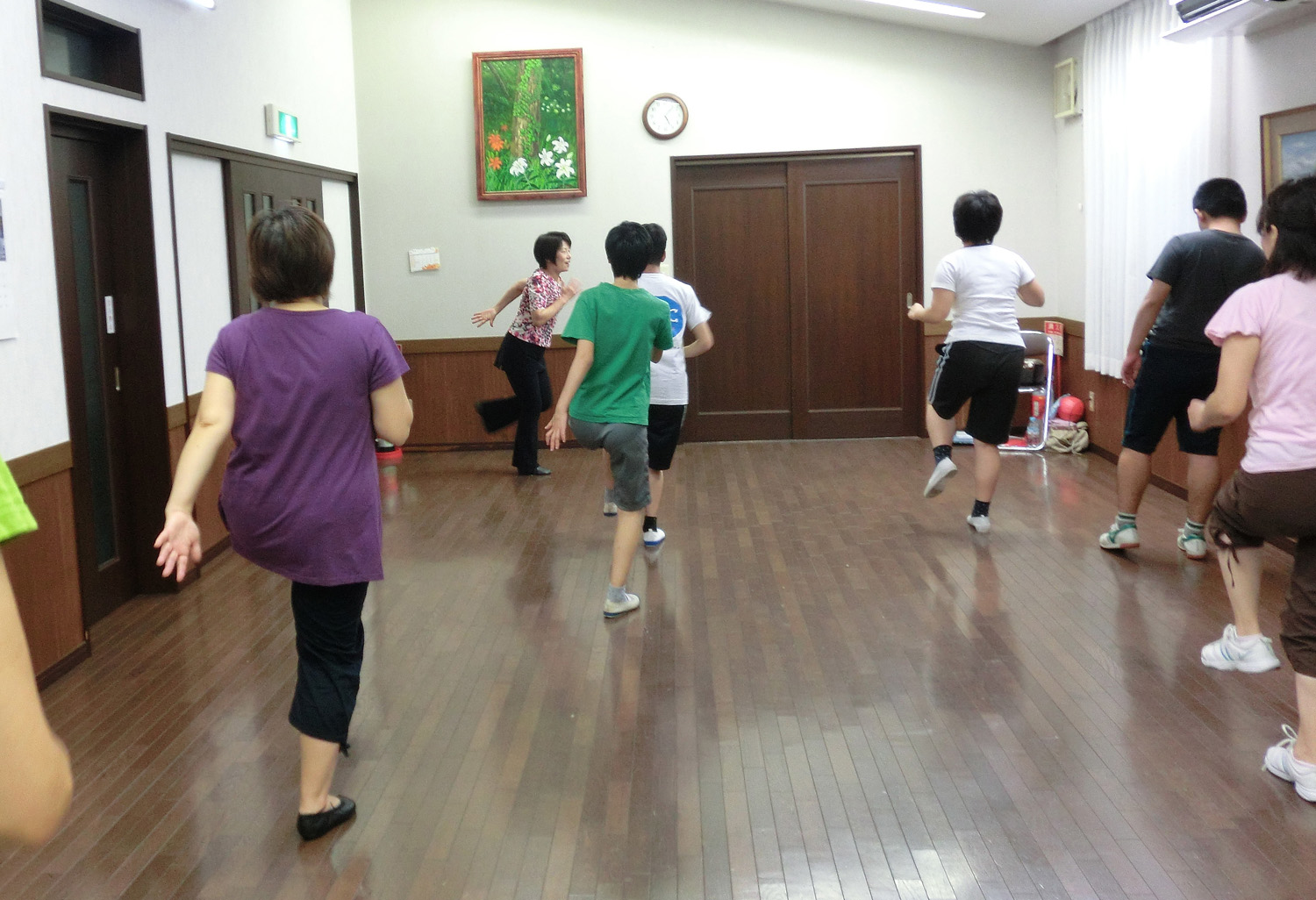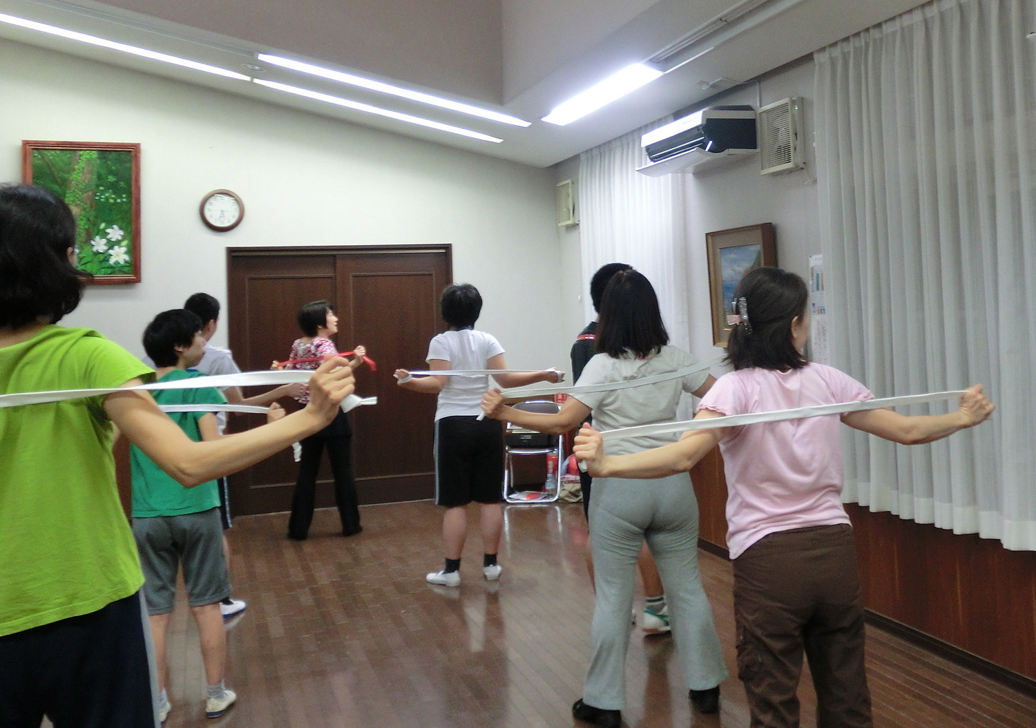 現在は、自治会館を借りて 月に1回 木曜夕方、1時間ほど 先生の指導を受けて、親子で活動しています。